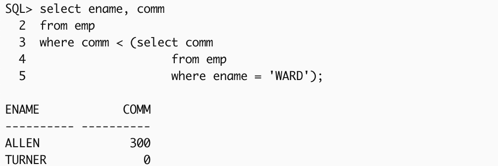 Sub Query 부분은 WHERE절에 연산자 오른쪽에 위치해야 하며 반드시 괄호로 묶어야 한다.