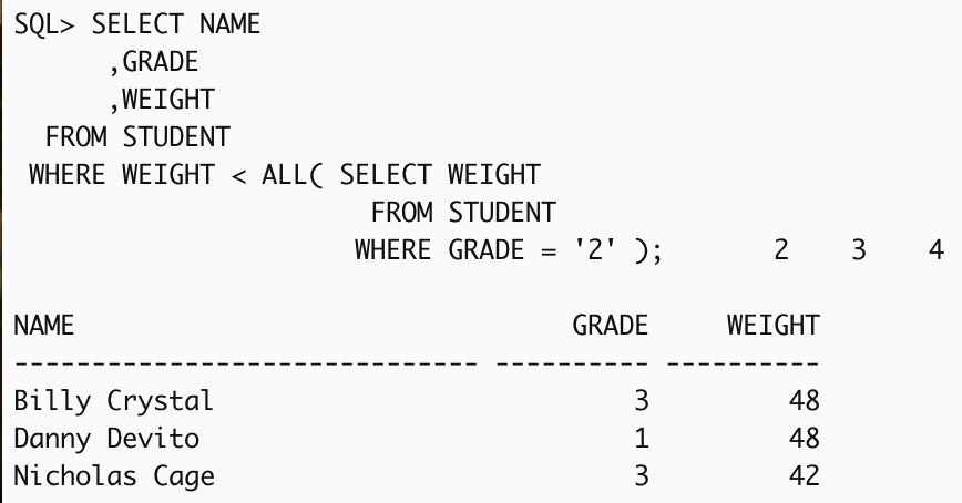 SAL < ALL(100, 200, 300) 이 되면 우변은 100(최소값)을 반환한다