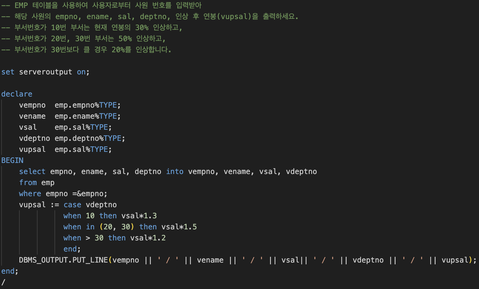 | [오라클 DB 스터디] PL/SQL 변수 (0) | 2025.02.24 |